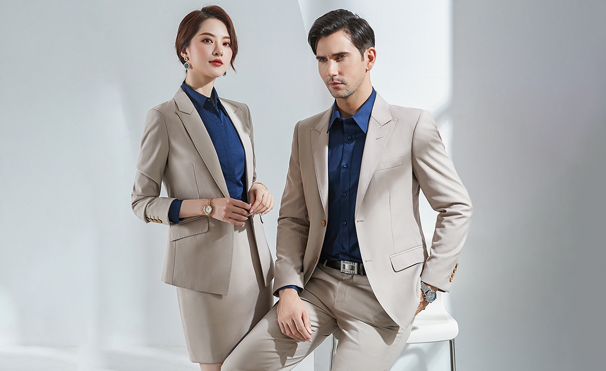 所謂職業裝是指,由單位出麵,統一製作、統一款式、統一下發、統一要求穿著的,同樣麵料的,同樣款式的製式服裝。職業裝有三個好處: